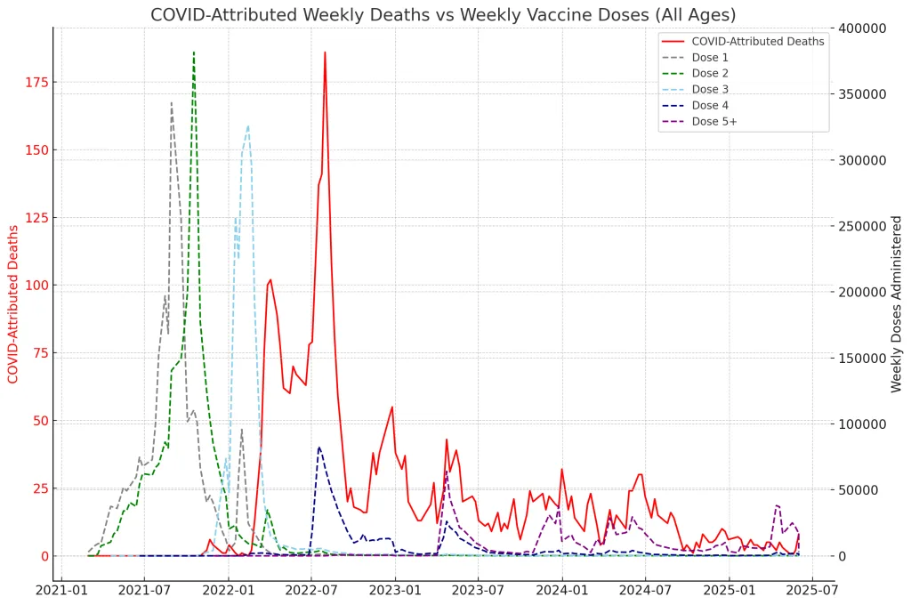 - Granular, high-quality internal data (e.g., deaths by dose count and time since dose) was available to authorities long before it was released via OIA—but appears not to have been used for lagged outcome modeling.