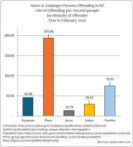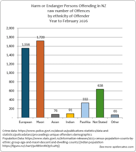 These graphs show all Harm or Endanger Persons Crimes where an offender was identified and proceedings were brought from March 2025 to February 2026, by ethnic group of the Offender: