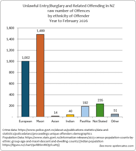 These graphs show all Unlawful Entry/Burglary and Related Crimes where an offender was identified and proceedings were brought from March 2025 to February 2026, by ethnic group of the Offender: