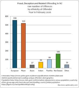 These graphs show all Fraud, Deception and Related Crimes where an offender was identified and proceedings were brought from March 2025 to February 2026, by ethnic group of the Offender:
