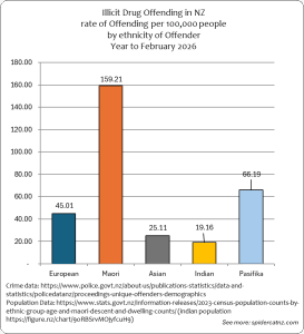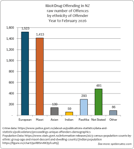 These graphs show all Illicit Drug Crimes where an offender was identified and proceedings were brought from March 2025 to February 2026, by ethnic group of the Offender: