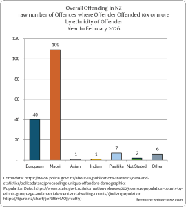 These graphs show all Crimes where an offender was identified and proceedings were brought from March 2025 to February 2026, by ethnic group of the Offender (including those Offenders who committed 10 or more crimes):