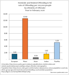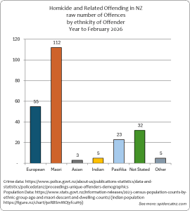 These graphs show all Homicide and Related Crimes where an offender was identified and proceedings were brought from March 2025 to February 2026, by ethnic group of the Offender: