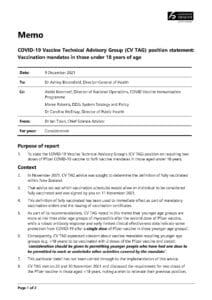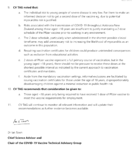 Group (CV TAG) recommendations on the use of the Pfizer vaccine” (Wayback Link) was sent to Doctor Ashley Bloomfield.