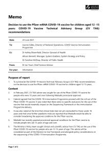 In the 24 June 2021 memo “Decision to use the Pfizer mRNA COVID-19 vaccine for children aged 12 -15