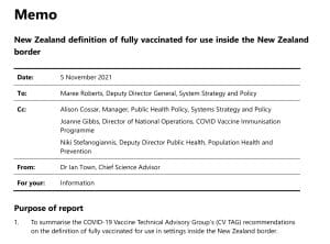 In November 2021, CVTAG was approached for advice on how to define “fully-vaccinated” within NZ.