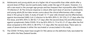 CVTAG then clarified their position, and their concerns on December 9 2021. (978,430 people aged 12-29 had taken a second dose).