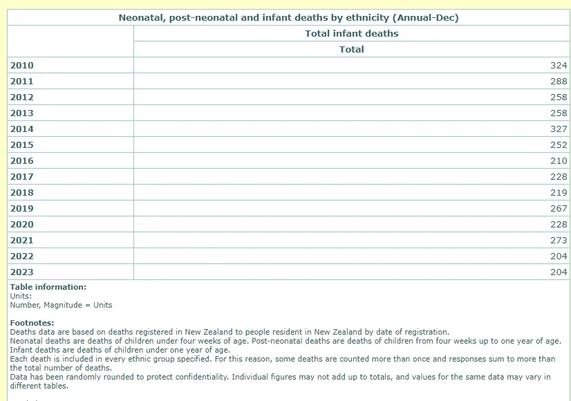 For reasons known only to Te Whatu Ora, the tables they provided didn’t even match, but they did highlight a fairly massive uptick in the deaths of 0-4 year olds.